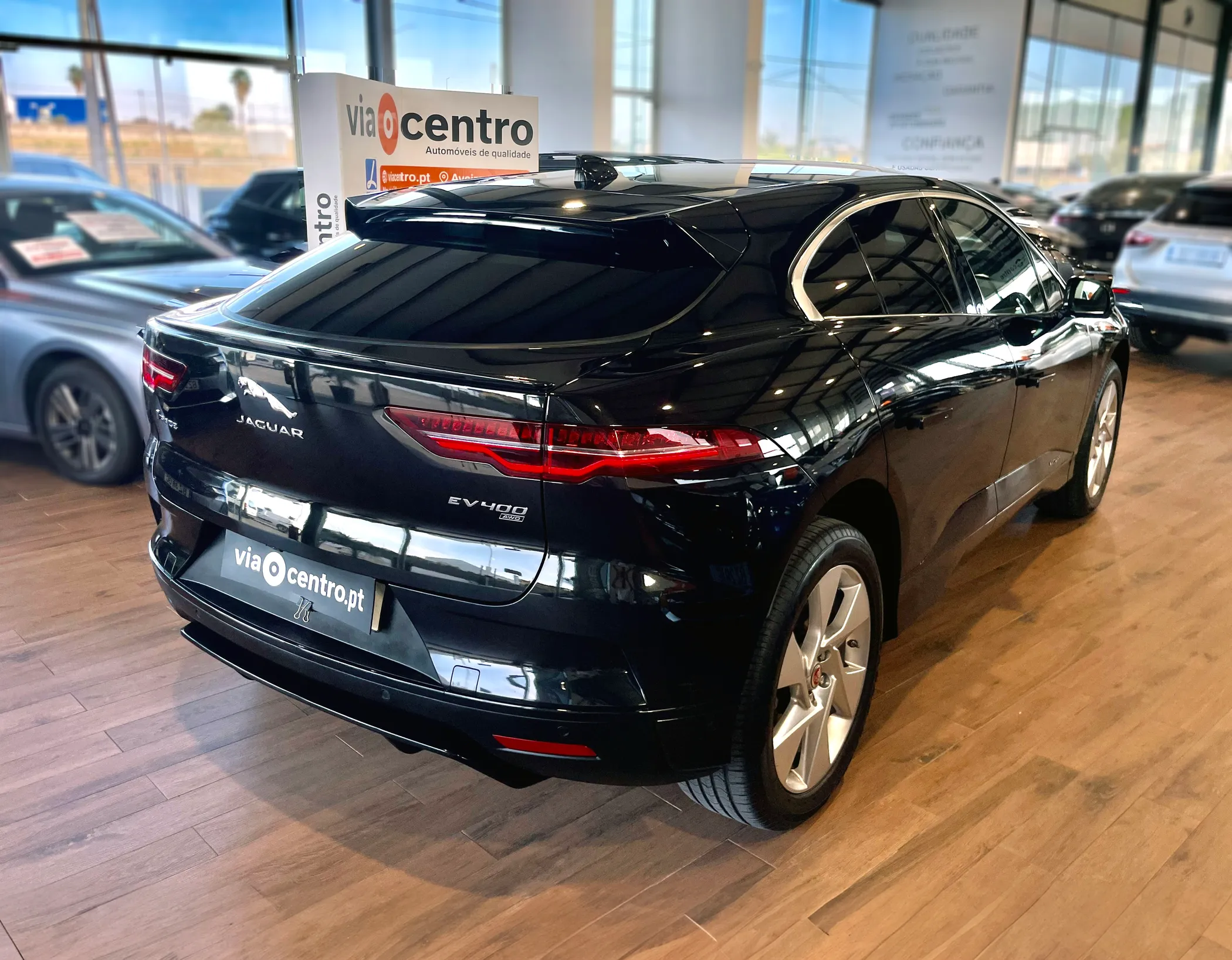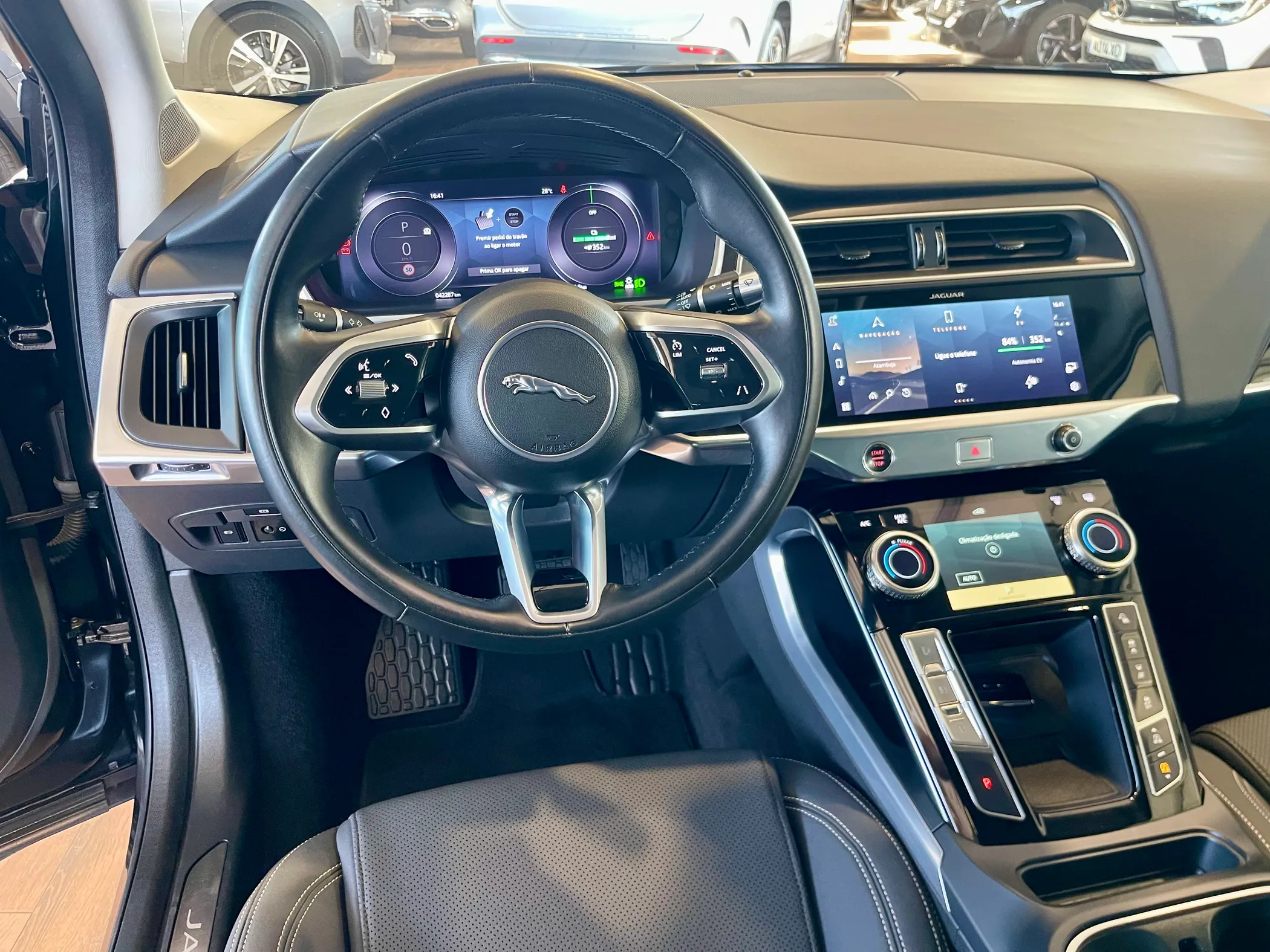 O I-PACE apresenta uma silhueta aerodinâmica e elegante, com linhas fluidas e formas esculturais. A frente é marcada pela grande grelha em formato de colmeia, com faróis estreitos e tecnologias de iluminação LED, conferindo-lhe um visual agressivo e moderno. O estilo é inspirado no design de modelos esportivos, mas com a versatilidade de um SUV. É impulsionado por dois motores elétricos, um em cada eixo, oferecendo tração integral e uma potência total de até 400 cv. Com um torque impressionante, o modelo consegue acelerar de 0 a 100 km/h em cerca de 4,8 segundos, proporcionando uma experiência de condução ágil e emocionante. A autonomia do veículo é de aproximadamente 470 km, dependendo do tipo de condução e das condições da estrada, graças à sua bateria de 90 kWh. É equipado com um sistema de infoentretenimento Pivi Pro, que inclui uma tela sensível ao toque de alta resolução, conectividade com Apple CarPlay e Android Auto, além de comandos por voz. O painel de instrumentos digital e o display central têm uma interface intuitiva e são projetados para facilitar o acesso às funcionalidades do veículo. Também oferece sistemas avançados de assistência ao motorista, como controle de cruzeiro adaptativo, alerta de colisão frontal e monitoramento de ponto cego.
